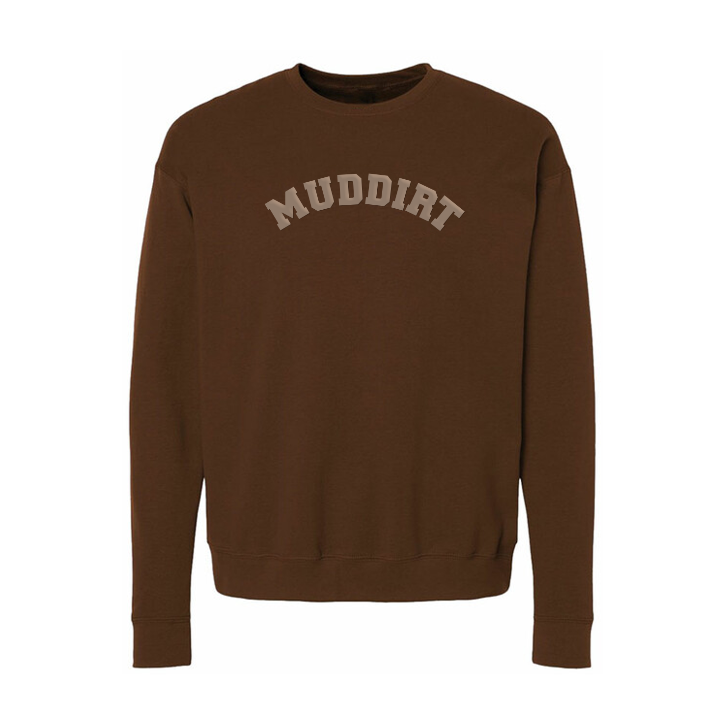 Unisex crewneck sweatshirt made of 80% cotton and 20% polyester blend fleece featuring "MUDDIRT" on the front and the show's logo on the back