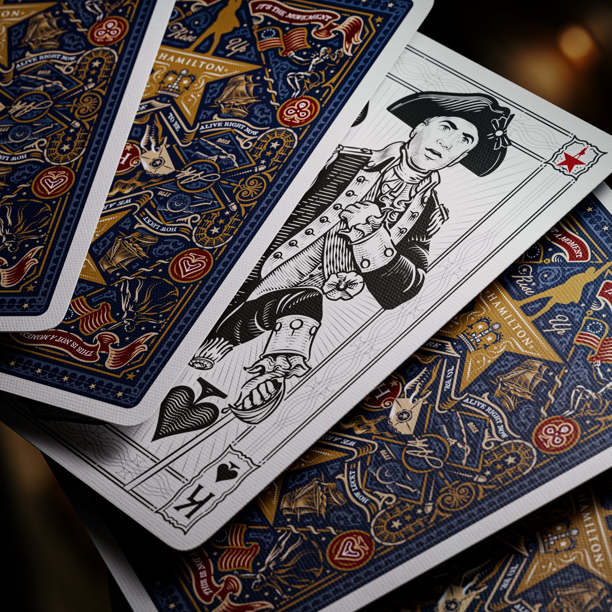 Put history in the palm of your hands with illustrations rich with hidden references and lyrical nods. Featuring gold foil accents and precise embossing, they are approved for play by royal decree.