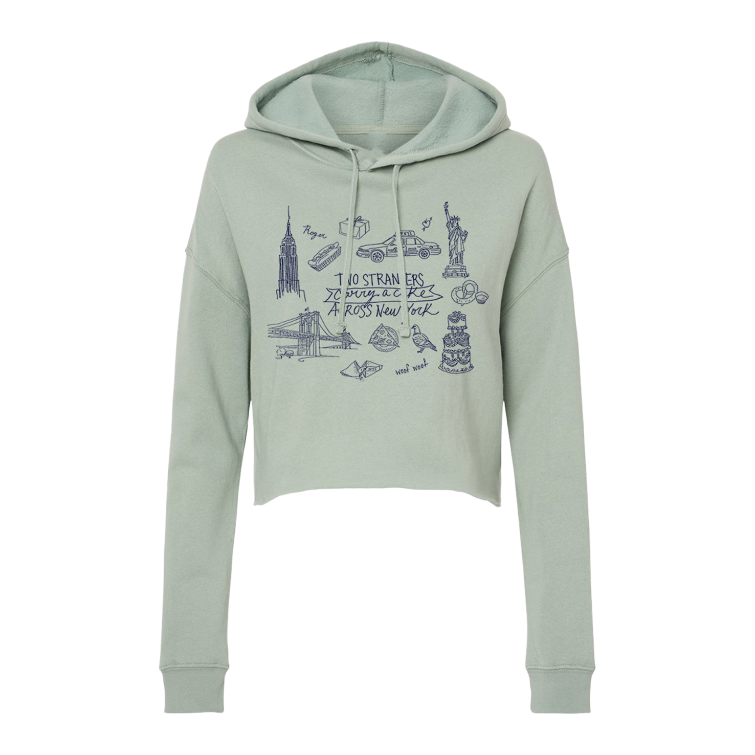Lightweight crop hoodie made from 80% ring-spun cotton and 20% polyester with 100% cotton face, raw hem and featuring New York City illustrations by Maghen Brown.
